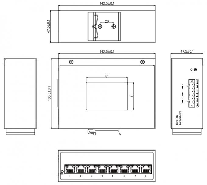 | PoE Configuration | PoE+Ports: 8FE PoE, 802.3af,802.3at, auto-negotiation | |